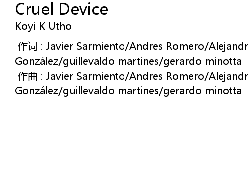 | [00:00.000] | 作曲 : Javier Sarmiento/Andres Romero/Alejandro González/guillevaldo martines/gerardo minotta |