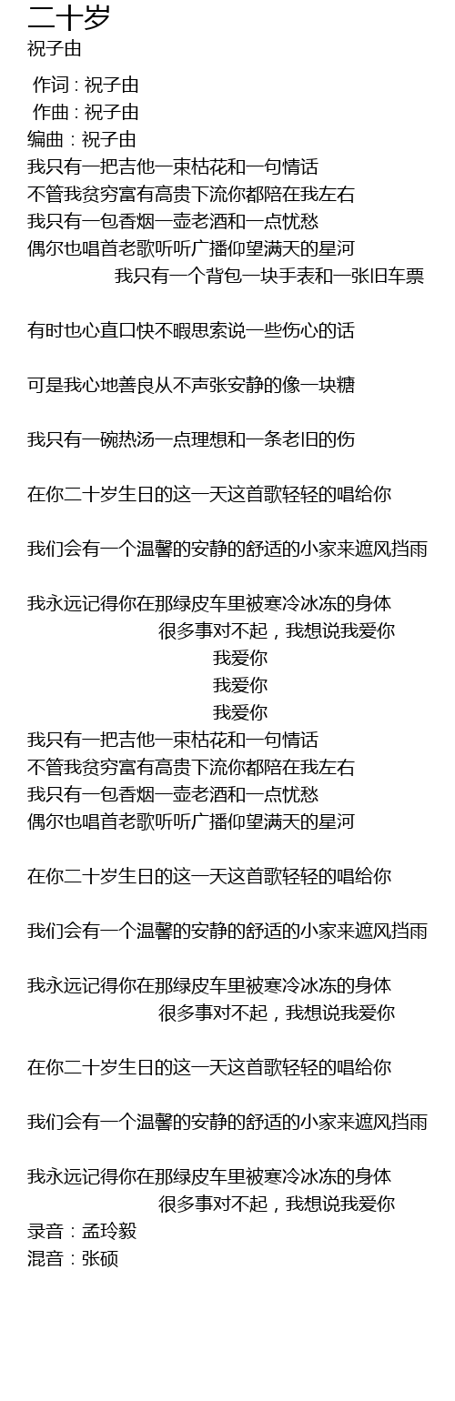 | [01:05.938] | 在你二十岁生日的这一天这首歌轻轻的唱给你 |