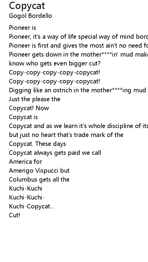 Copycat and as we learn it's whole discipline of its own: same walk, same talk, but just no heart that's trade mark of the |