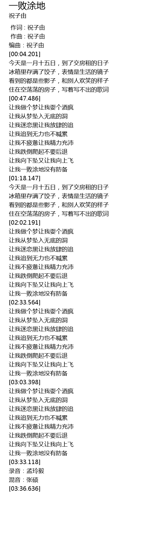 | [00:39.976] | 住在空荡荡的房子,写着写不出的歌词 |