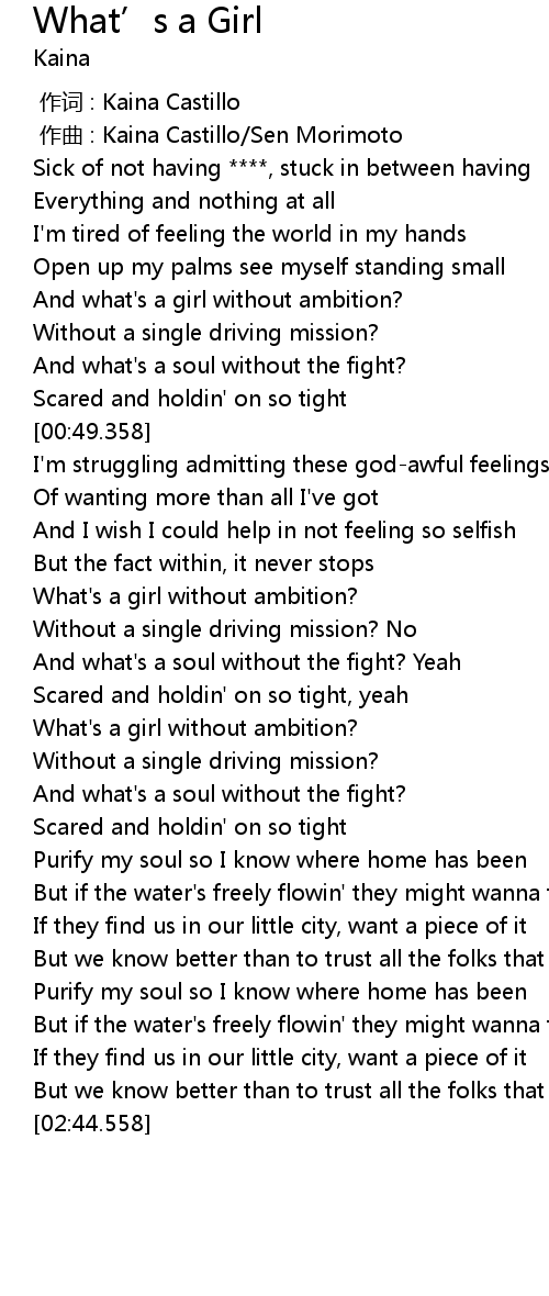 | [00:31.778] | And what's a girl without ambition? |