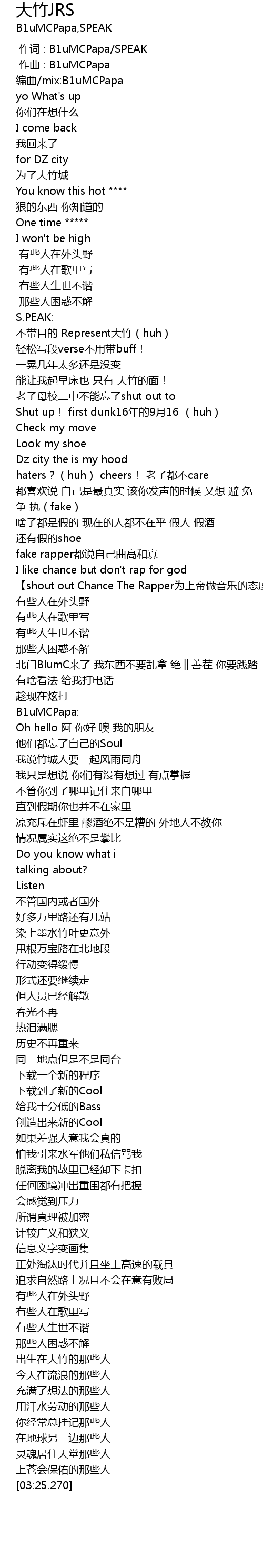 | [00:36.466] | bù dài mù dì Represent dà zhú huh |