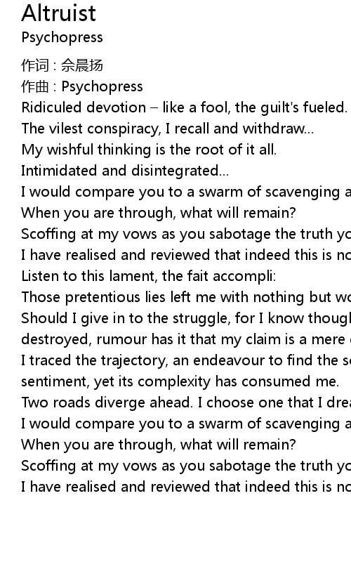 | Scoffing at my vows as you sabotage the truth you pursued. | |
