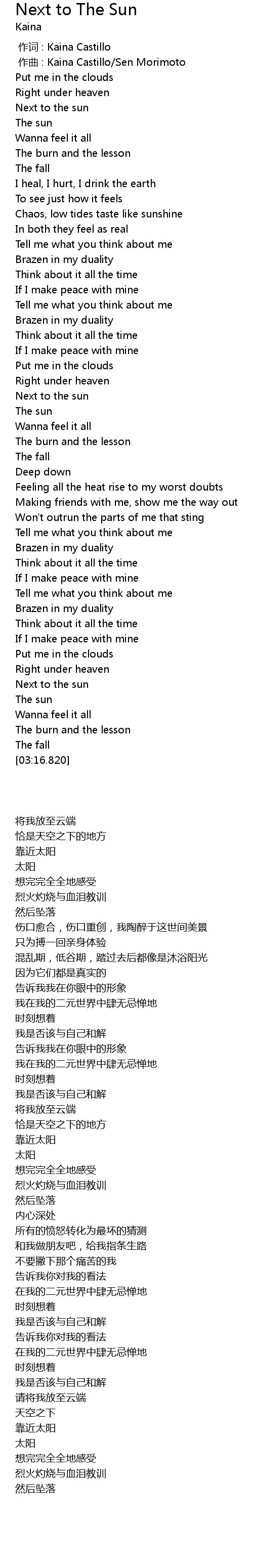 | [03:01.146] | Next to the sun |