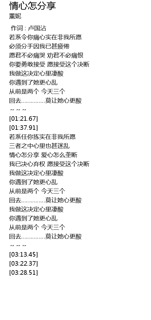 | [01:53.88] | 情心怎分享 爱心怎么垄断 |