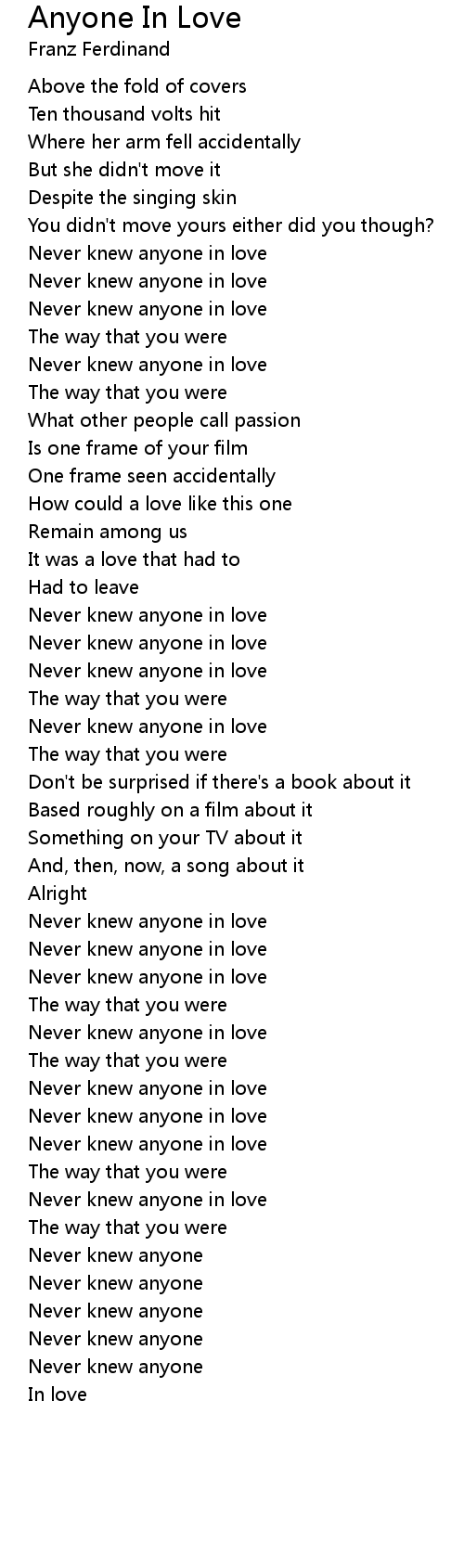 Never knew anyone in love |