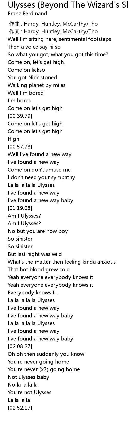 | [02:34.47] | Not ulysses baby |