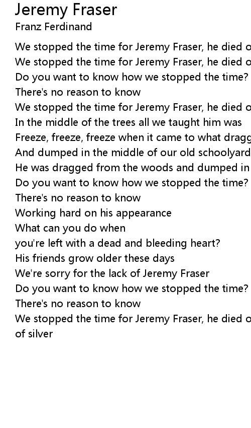 We stopped the time for Jeremy Fraser, he died of a lance of silver |