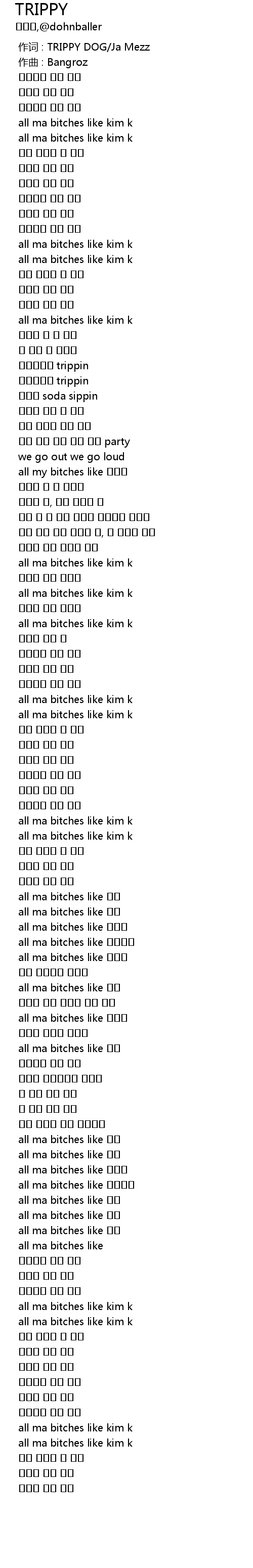 | [00:00.000] | 作词 : TRIPPY DOG/Ja Mezz |