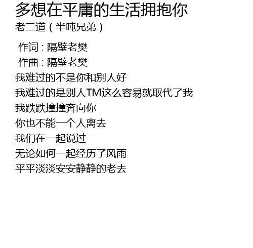 | [00:00.000] | 作词 : 隔壁老樊 |