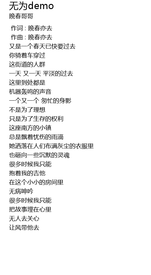 | [00:00.000] | 作词 : 晚春亦去 |