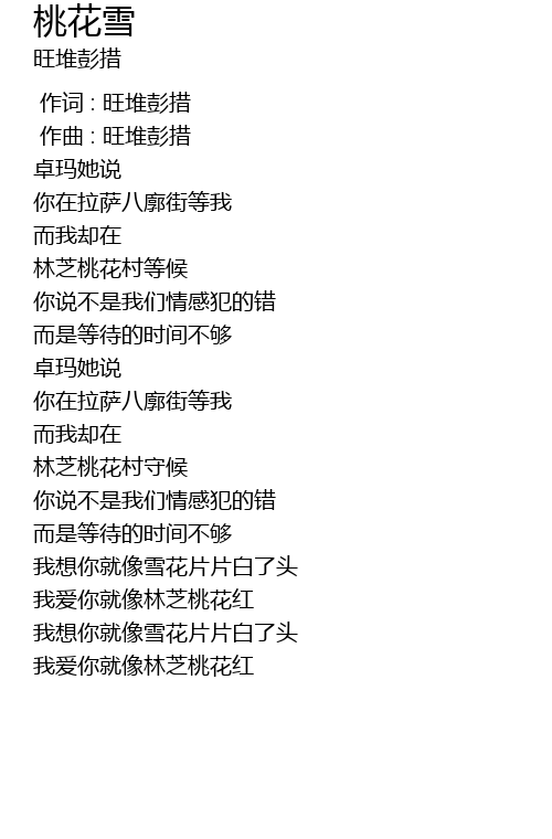 | [00:00.000] | 作词 : 旺堆彭措 |