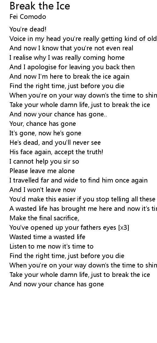 And now I'm here to break the ice again |
