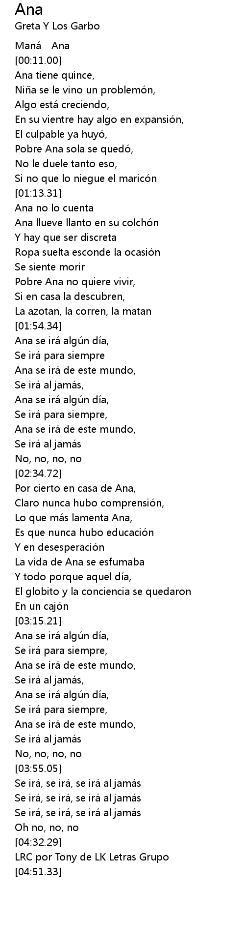 | [02:51.33] | Lo que ma s lamenta Ana, |