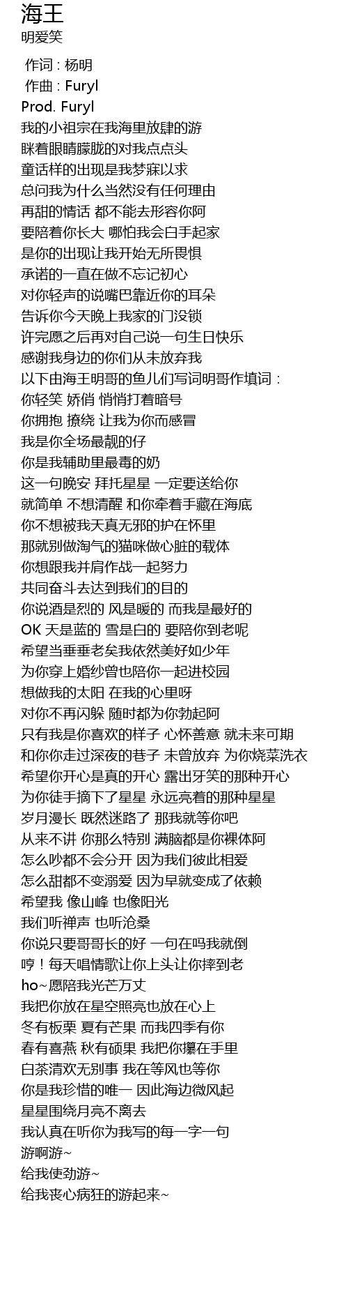 | [00:53.919] | 以下由海王明哥的鱼儿们写词明哥作填词: |