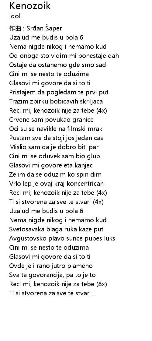 | Reci mi, kenozoik nije za tebe (4x) | |