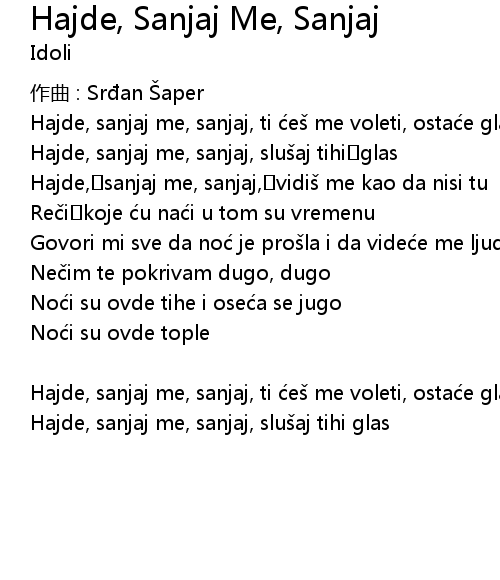 | Song | Hajde, Sanjaj Me, Sanjaj |