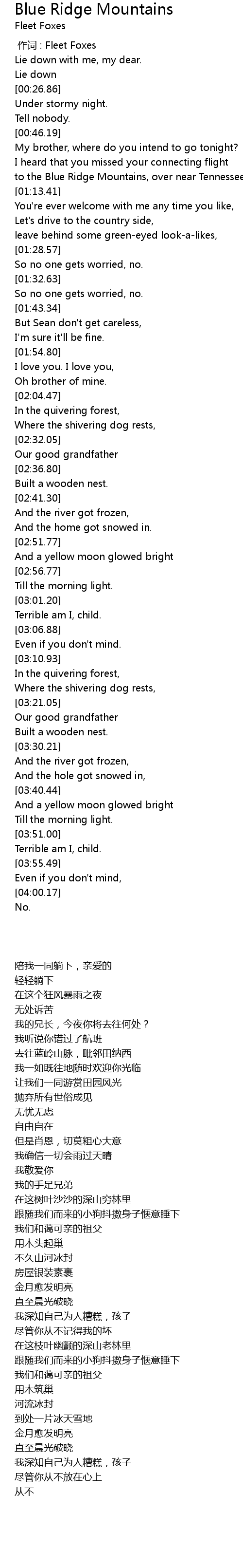 | [00:00.00] | 作词 : Fleet Foxes |