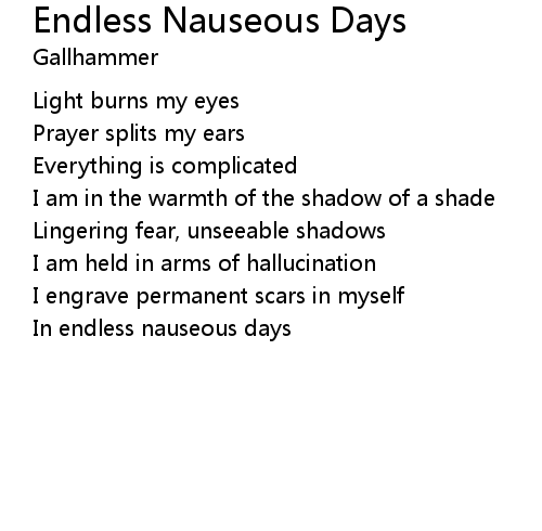 | In endless nauseous days |