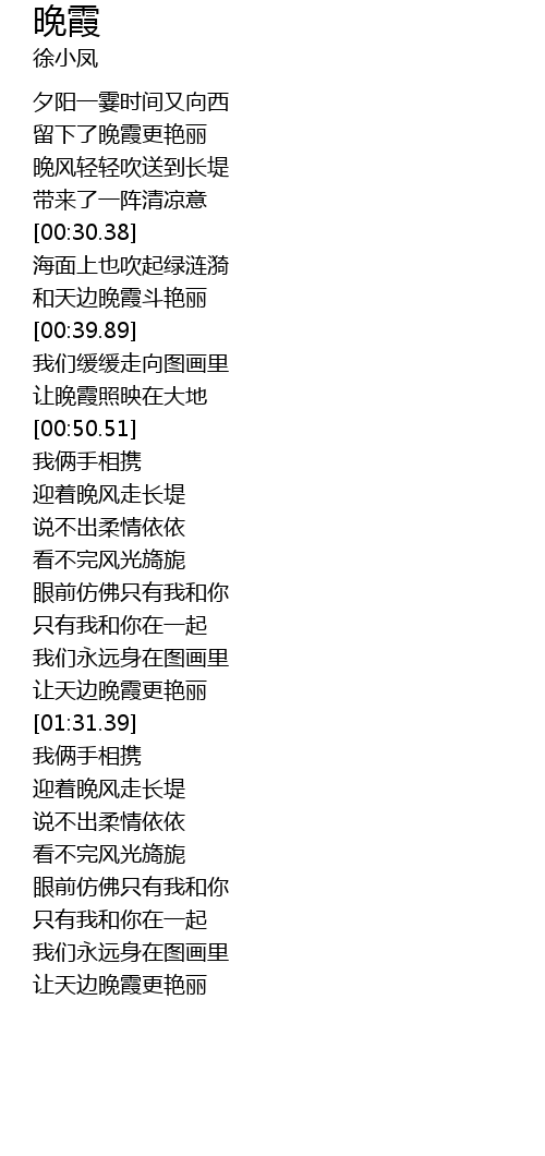 | [02:26.27] | 让天边晚霞更艳丽 |