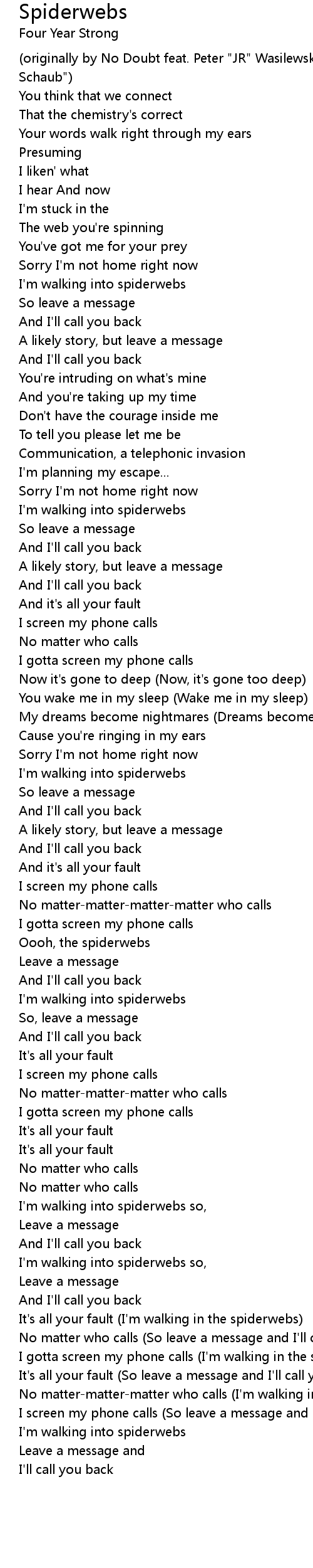 No matter-matter-matter who calls (I'm walking in the spiderwebs) |