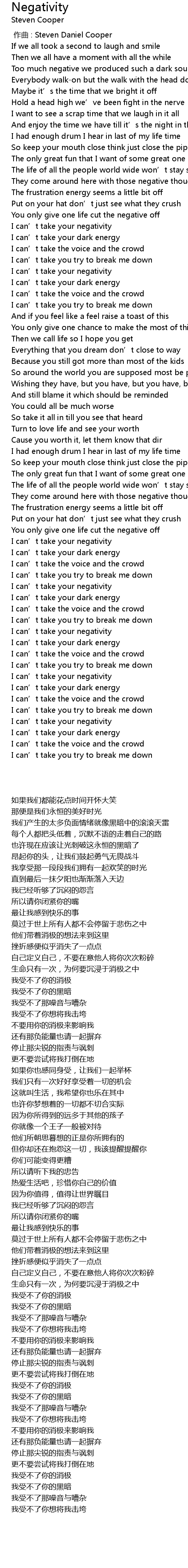 | [02:23.81] | I can' t take your negativity |