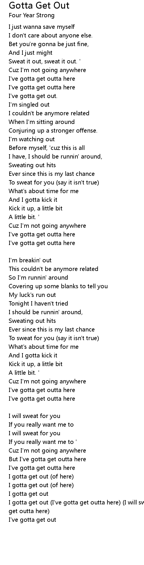 I gotta get out (I've gotta get outta here) (I will sweat for you) (I've gotta get outta here) |