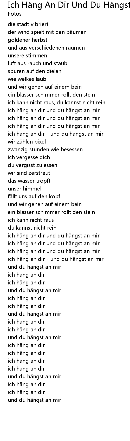 | Song | Ich Häng An Dir Und Du Hängst An Mir |