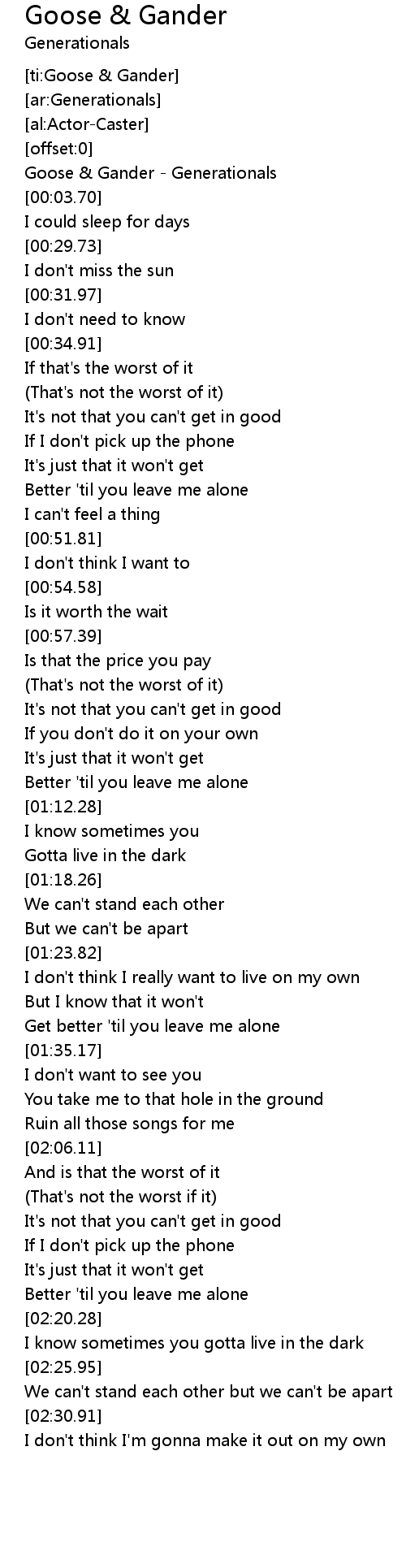 [ti:Goose & Gander] |