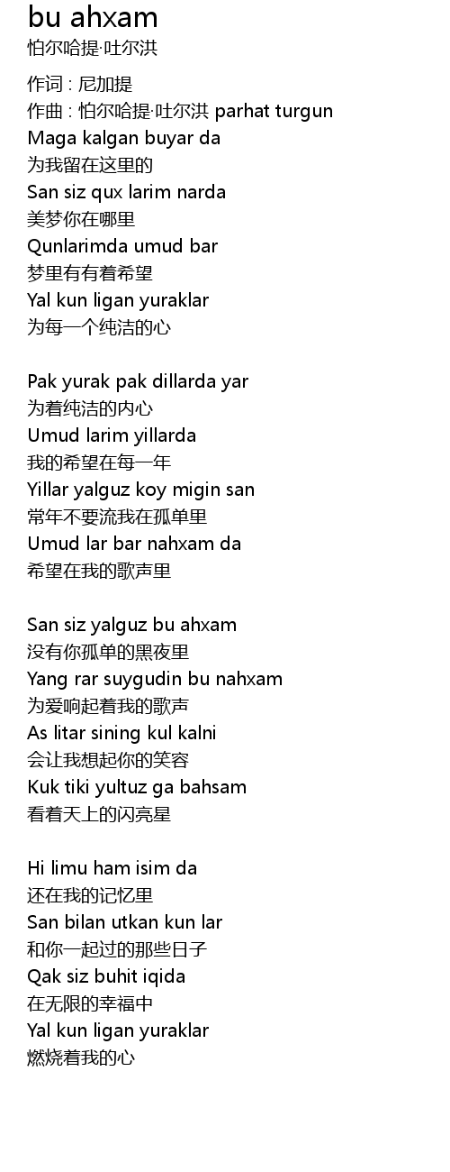 | zuò qǔ : pà ěr hā tí tǔ ěr hóng parhat turgun | |