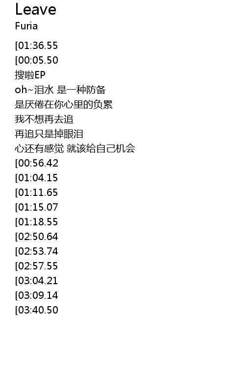 | [01:54.23][01:36.55][00:00.00] | 郭 静 - Leave |