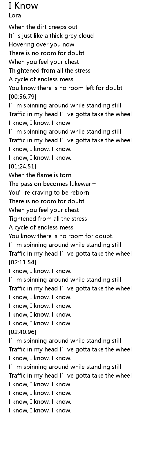 | [01:10.58] | Traffic in my head I’ve gotta take the wheel |