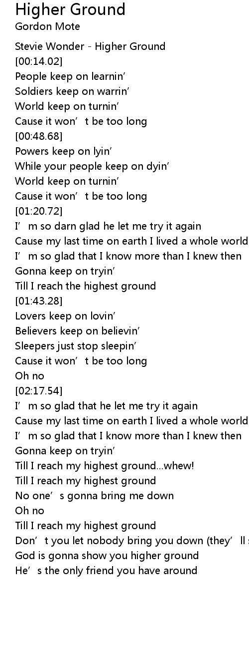 | [00:08.05] | Stevie Wonder Higher Ground |
