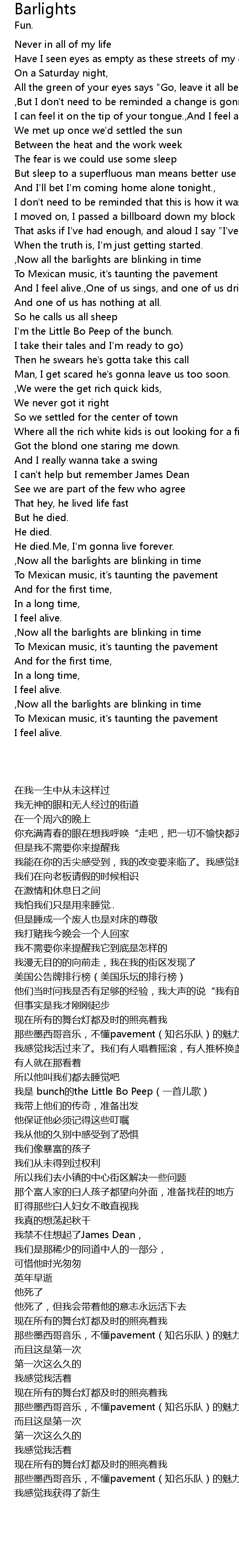 ,Now all the barlights are blinking in time |