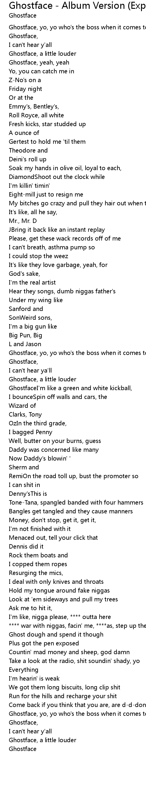 Ghostface, yo, yo who's the boss when it comes to these songs? |