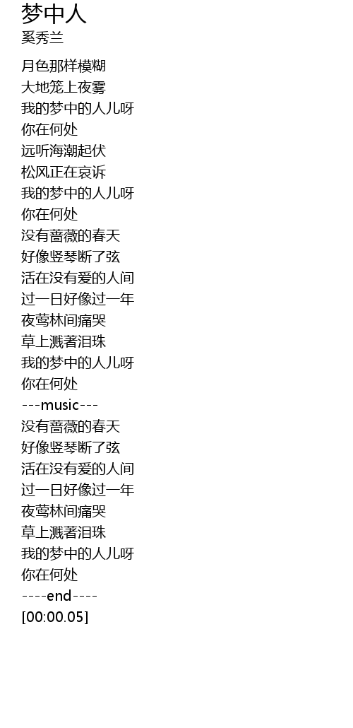 | [01:13.43] | 我的梦中的人儿呀 |