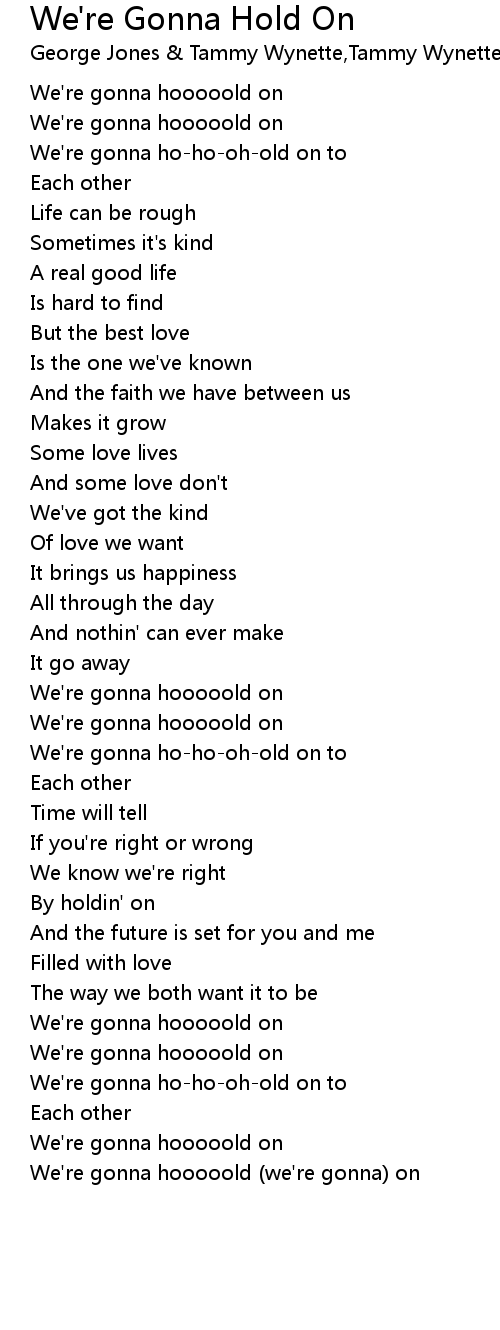 [02:44.91] We're gonna hooooold (we're gonna) on