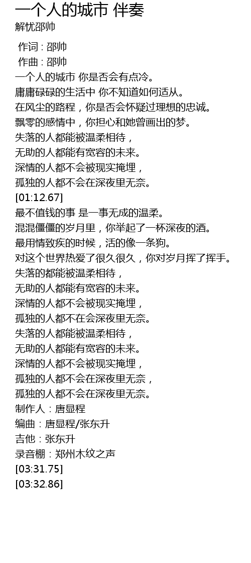 | [00:00.000] | 作词 : 邵帅 |