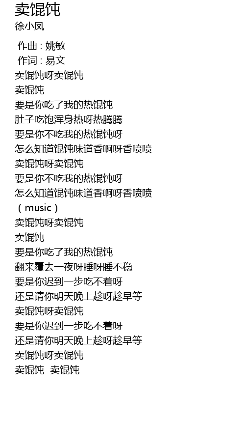 | [00:16.63] | 卖馄饨呀卖馄饨 |