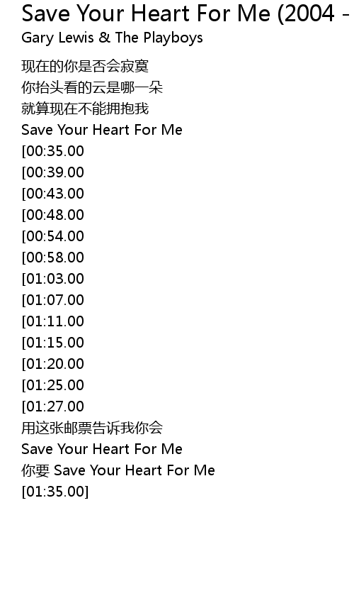 | [02:49.00][01:27.00] | 你要 Save Your Heart For Me |