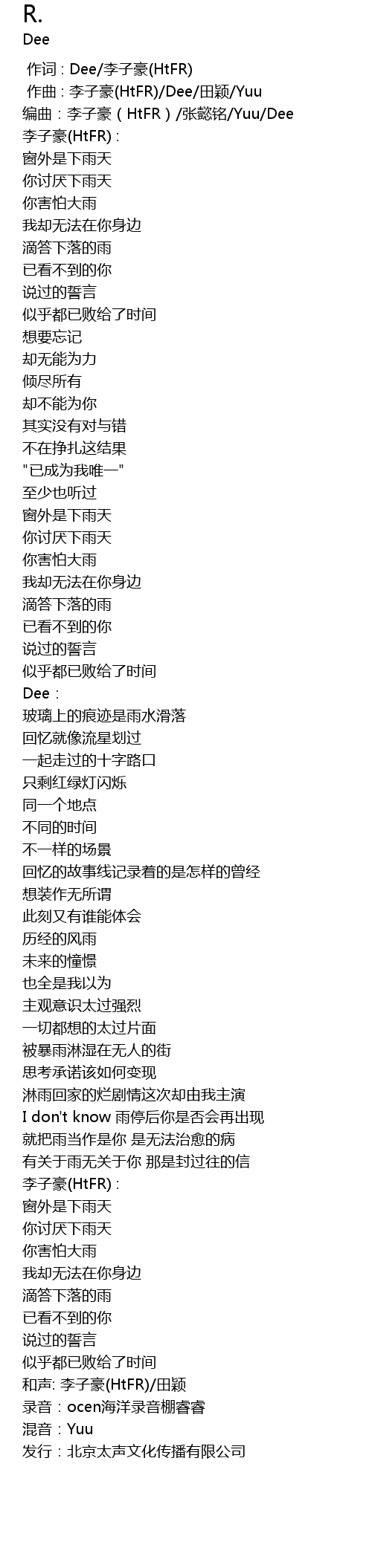 | [00:00.000] | 作词 : Dee/李子豪(HtFR) |