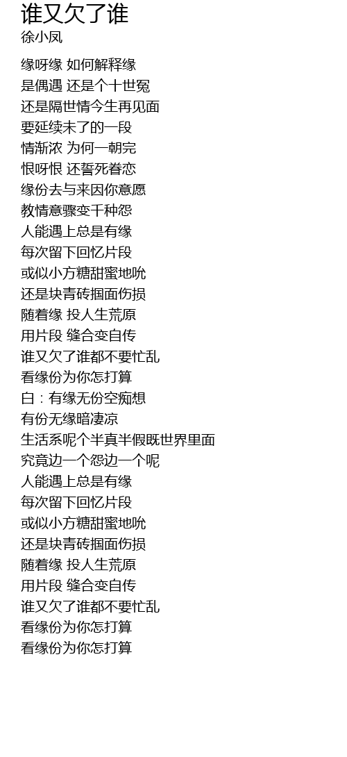 | [00:11.000] | 缘呀缘 如何解释缘 |