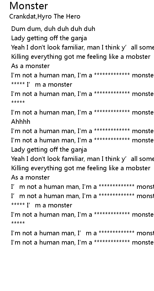 | [01:20.262] | I'm not a human man, I'm a ************* monster |