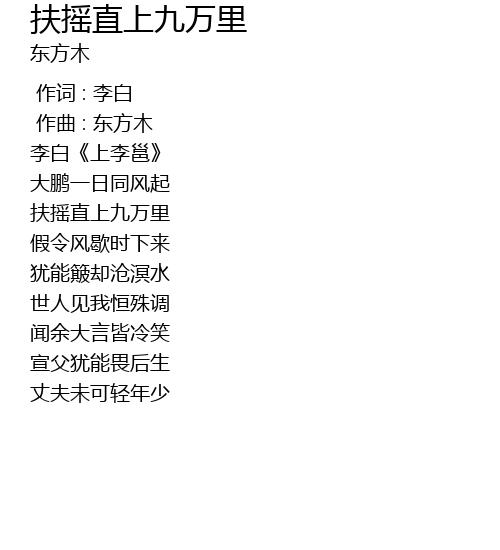 | [00:15.00] | fú yáo zhí shàng jiǔ wàn lǐ |