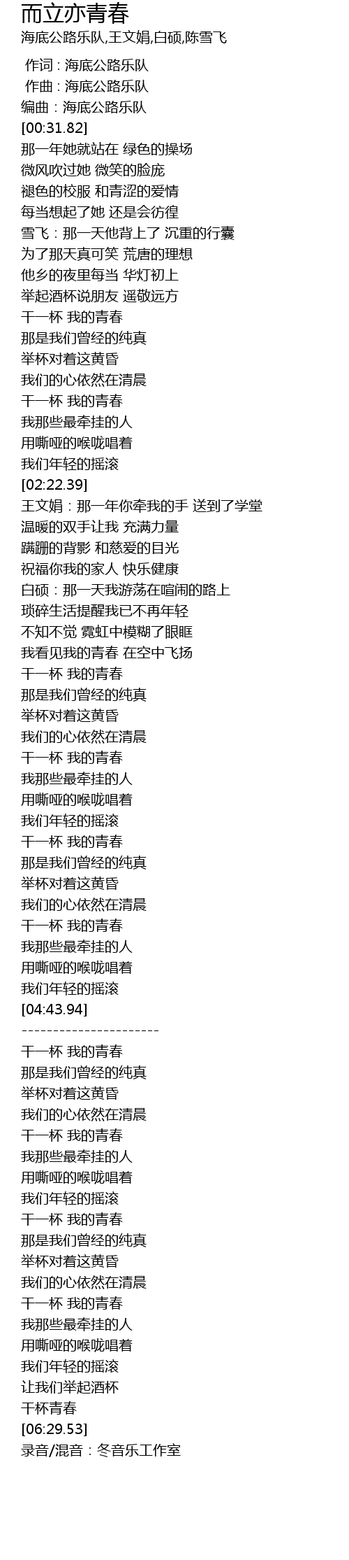 | [03:40.57] | gàn yī bēi wǒ de qīng chūn |