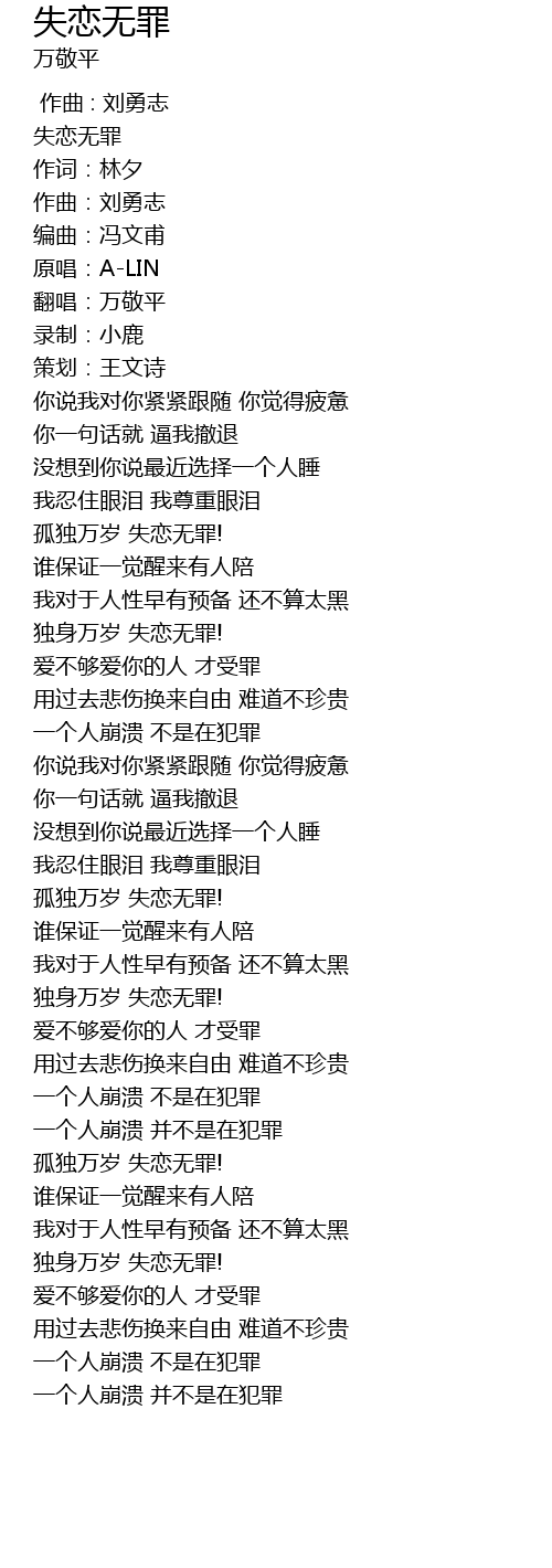 | [00:00.81] | 失恋无罪 |
