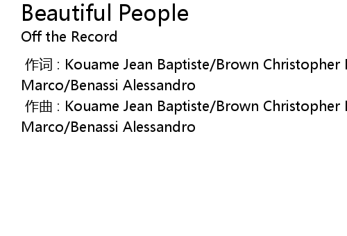 | [00:00.000] | 作词 : Kouame Jean Baptiste/Brown Christopher Maurice/Benassi Marco/Benassi Alessandro |