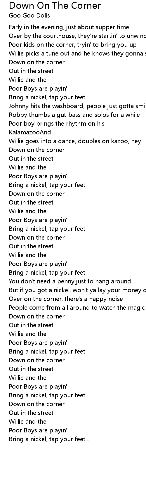 Song Down On The Corner