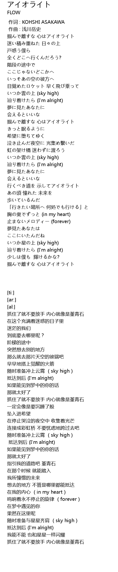 | [00:00.000] | 作词 : KOHSHI ASAKAWA |