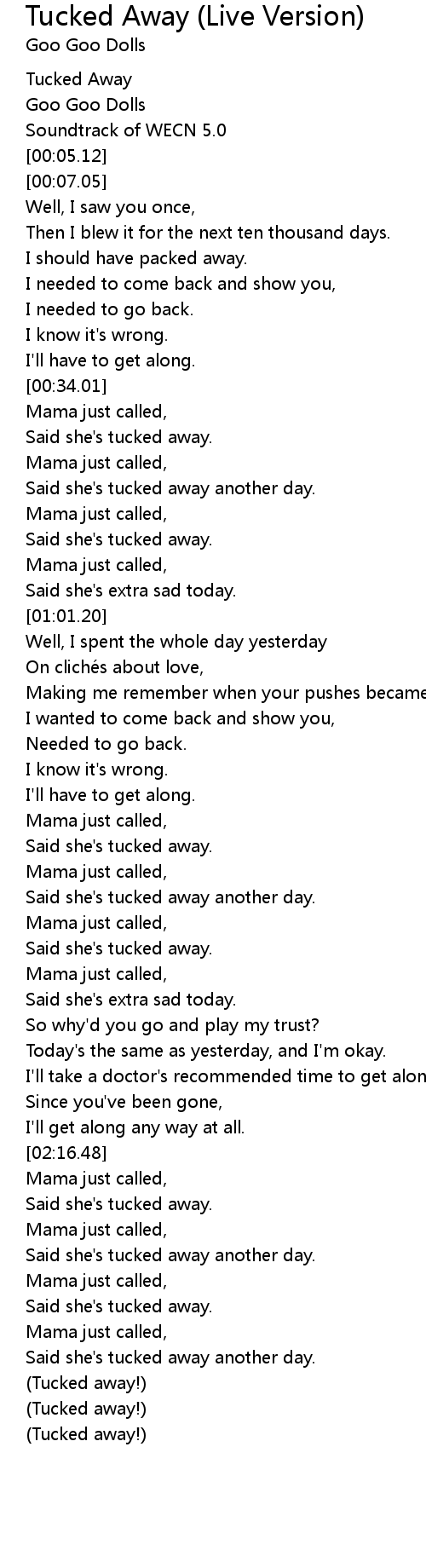| [01:55.27] | Today' s the same as yesterday, and I' m okay. |